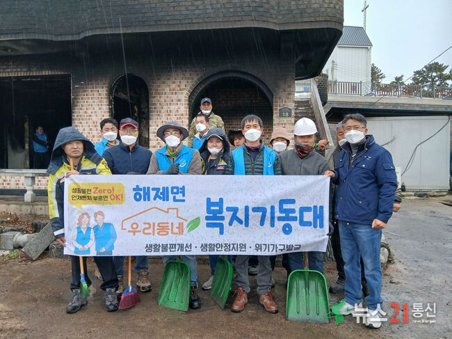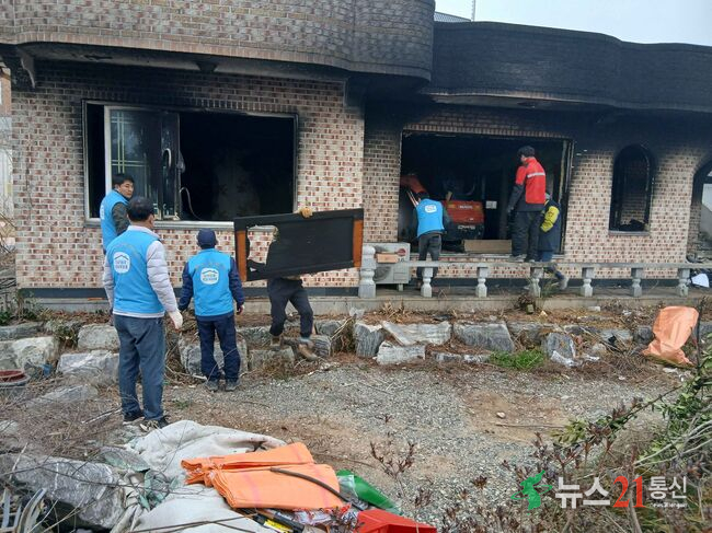 [뉴스21 통신=박철희 ] 무안군 해제면은 지난 21일 발생한 주택 화재로 피해를 입은 가구를 지원하기 위해 24일 ‘복지기동대의 날’을 운영하고 주택 정리 및 환경정비 활동을 실시했다고 밝혔다.