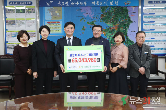 보령시는 27일 시장실에서 김동일 시장과 성지현 NH농협은행 보령시지부장 등 관계자가 참석한 가운데 법인제휴카드 사용 적립금 전달식을 가졌다.