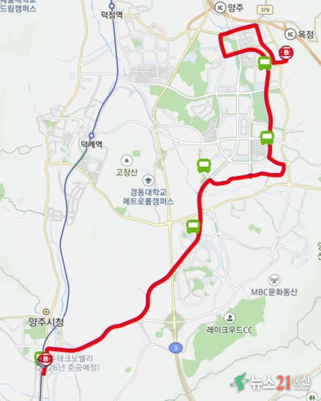 시에 따르면 시내버스 99번 노선 경로가 일부 변경된다. 기존 경로에서 회암중학교를 경유하도록 조정해 e편한세상 옥정메트로포레, 유림노르웨이숲, 더파크포레, 제이드웰, 세영리첼레이크파크 등 옥정 남부단지 거주 학생들의 직결 통학 노선을 확보했다.