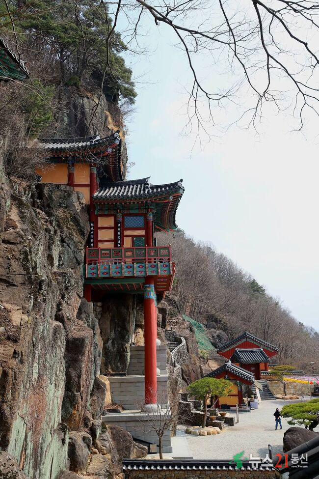 암자는 절벽 바위에 기대어 지어져 있어 독특한 경관과 함께 섬진강 일대를 한눈에 내려다볼 수 있다.