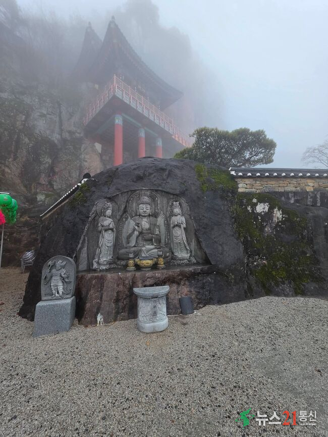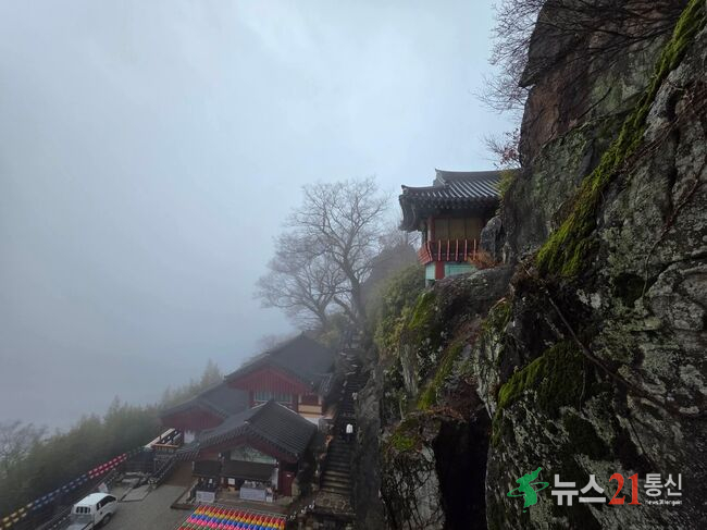 암자와 기암괴석이 어우러진 독특한 지형 위에 자리해 풍광이 뛰어나다.