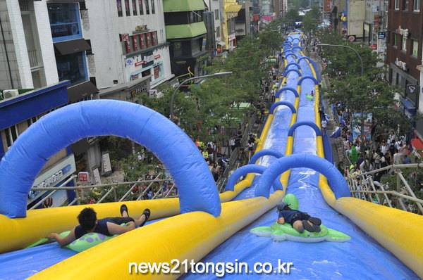 ‘도시를 깨우는 축제(Wake up City Festa)’란 캐치프레이즈 아래 진행되는 이번 행사를 위해 연세로에 길이 120m, 높이 10m, 너비 6m의 대형 워터슬라이드가 설치돼 색다른 물놀이 기회를 제공한다.