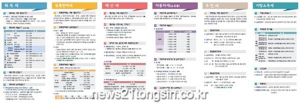 리플릿은 지방세에 대해 평소 문의가 많았던 내용을 중심으로 이해하기 쉽게 제작됐다. 취득세, 등록면허세, 재산세, 자동차세, 주민세, 지방소득세 등이 세목별로 정리돼 있고, 특히 법인 설립・설치・전입에 따른 중과세 및 비과세・감면 등 기업 운영 시 알고 있으면 유용한 규정들이 포함돼 있다.