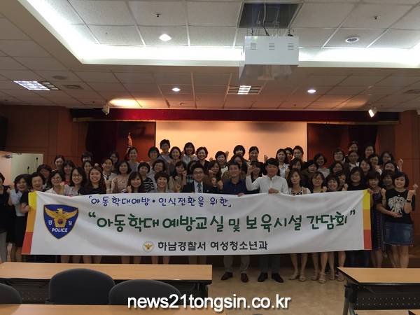 하남경찰서 (경찰서장 정경택)는 지난 6일 하남시 종합사회복지관에서 아동학대 근절을 위해 어린이집 연합회 회장 및 임원 이하 60여명을 대상으로 하반기 아동학대 예방교육을 실시했다고 7일 밝혔다.