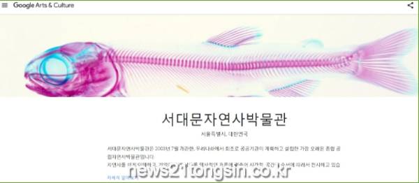 서대문자연사박물관(관장 이강환)은 ‘구글 Arts & Culture 프로젝트 – 자연사(Natural History)’에 참여해 온라인 전시를 제공한다고 23일 밝혔다.