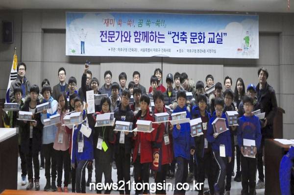 지역의 건축사들이 재능기부 강사로 나서 진행하는 ‘꿈 가(家)득한 교실’은 초등학생들이 마포구에 있는 건축물을 이해하고 창의력을 계발하기 위해 지난 2013년부터 매년 1회 운영되고 있다.