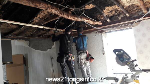 아울러 부발읍 노부부세대는 그동안 노후로 내려앉은 천정이 언제 무너질지 몰라 노심초사 했는데 성민종합건설(대표 김영근)과 재능기부자 김명중씨가 나서서 4월 21일 천정공사를 추진하였다.