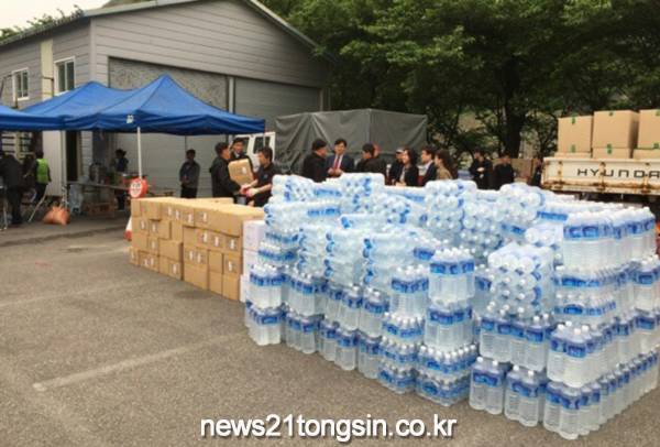 성남시는 지난 6일 삼척시에서 발생한 산불을 진화하기 위해 총력을 다하고 있는 진화인력 및 피해 주민들에게 생수와 빵 등 800만원 상당의 긴급구호물품을 5월 8일 보냈다.
