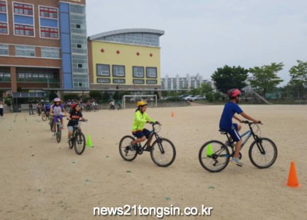 이를 위해 각 학교 운동장을 실제 도로처럼 꾸며 놓고 자전거를 타는 실습수업을 한다. 주행 코스를 달리며 자전거 횡단도 노면 표시, 표지판 내용 준수 등을 체험해 안전한 도로주행을 익히게 된다.