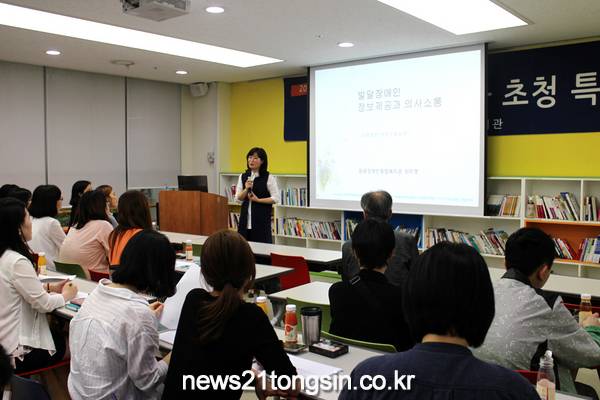 이번 특강은 사회복지시설 종사자와 발달장애인 가족 등 60여명이 참석한 가운데 ‘발달장애인 정보제공과 의사소통’이라는 주제로 진행되었으며 원광장애인종합복지관 최미영 사무국장이 강의했다.