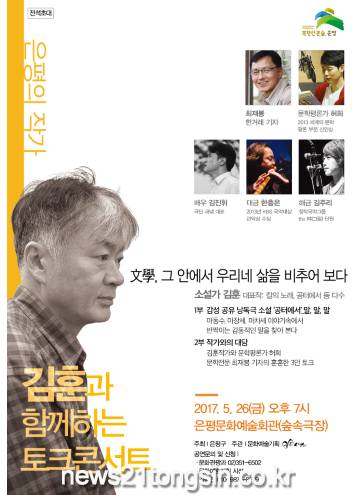 은평구(구청장 김우영)는 문학 진흥의 일환으로 은평문학 토크콘서트 제1편《은평이 낳은 소설가 김훈 초청 토크콘서트》를 오는 5월 26일(금) 오후 7시부터 9시까지 은평문화예술회관 숲속극장에서 개최한다.