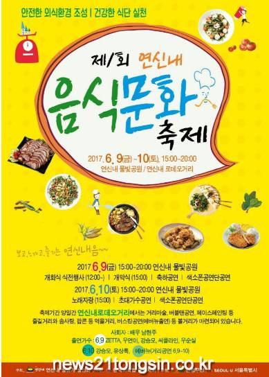 볼거리와 먹을거리로 가득한 제1회 연신내 음식문화축제가 오는 6월9일(금)부터 10일(토) 양일간에 걸쳐 연신내 물빛공원과 갈현동 신협 앞 골목길에서 펼쳐 진다.