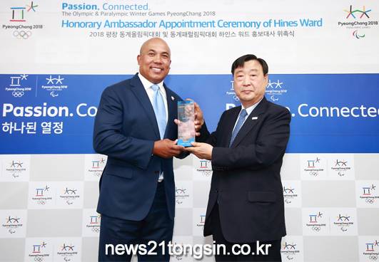 미식 축구스타 하인스 워드가 2018 평창 동계올림픽대회 및 동계패럴림픽대회 홍보대사에 위촉됐다.