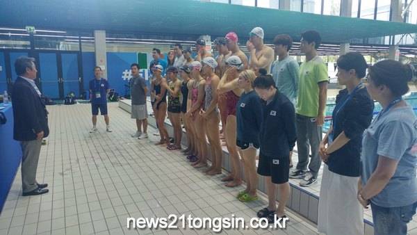 면담을 마친 이 회장은 대한민국 선수단이 훈련하고 있는 경기장에 방문하여 27명의 수영 국가대표 선수들을 격려하고, 안전하게 경기를 치루고 돌아올 것을 당부했다.