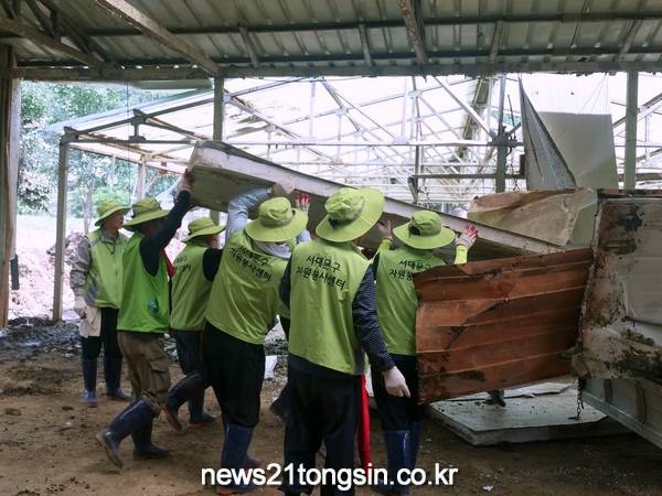 서대문구(구청장 문석진)는 최근 기습적인 폭우로 수해를 입은 수재민들을 돕기 위해 지난 2일 충북 괴산군을 찾아 수해 복구 자원봉사활동을 펼쳤다고 밝혔다.