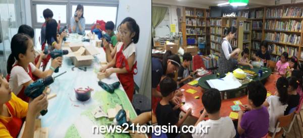 한편, 지난 7월부터는 초등 저학년 돌봄 운영단체가 선정되어 시범운영에 들어갔다. 선정된 곳은 와글와글작은도서관을 거점으로 하는 ‘퐁당퐁당 놀이터’와 성미산학교를 거점으로 하는 ‘성미산청소년교육활동연구회 거점방과후’ 2개소다. 인근 초등학교 1~2학년을 대상으로 친환경 먹거리 간식, 요리, 손끝놀이, 동네탐방, 책놀이, 만화, 과학 실험 등 다양한 프로그램을 실시한다.
