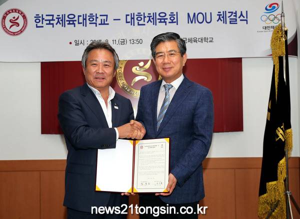 대한체육회(회장 이기흥)는 8월 11일(금) 한국체육대학교(총장 김성조)와 '스포츠 발전 업무협약(MOU)'을 체결했다.