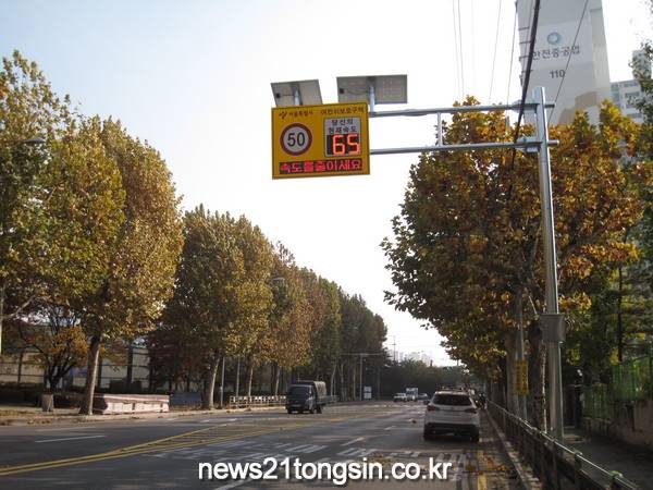 한편 구는 올해 어린이보호구역을 지나는 차량의 주행속도가 높아 어린이 교통사고 위험이 있는 서울태랑초등학교 화랑로 주변에 '태양광 VMS 과속경보표지판’을 설치했다. 현재 관내 어린이보호구역에 총 7개의 과속경보표지판이 설치돼 있다.
