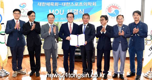 대한체육회(회장 이기흥)는 23일 대한스포츠의학회(회장 이경태)와 국가대표 선수들의 전문적·체계적인 의학적 자문과 진료지원 등 스포츠의학 정보교류를 확대하기 위한 업무협약을 체결했다.