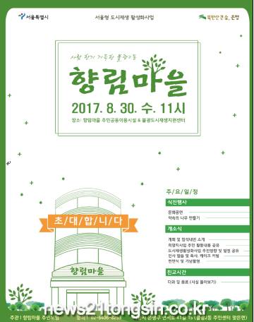 서울 은평구(구청장 김우영)가 오는 8월 30일(수) 11시에 “향림마을 주민공동 이용시설 및 불광 도시재생지원센터”를 개소하고 불광2동 향림마을(불광2동 480번지 일원, 면적 47만㎡)을 대상지로 서울형 도시재생활성화 사업을 본격적으로 추진한다.