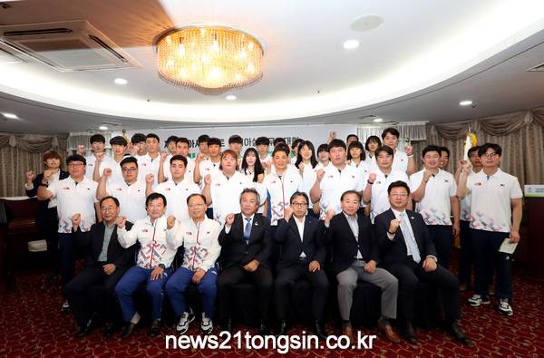 오늘 진행된 결단식에는 이기흥 대한체육회장, 남삼현 선수단장을 비롯하여 회원종목단체 및 시도체육회 관계자 등 총 100여 명이 참석하여 대회 출전 결의를 다짐했으며, 선수단 소개, 단기수여 등의 본 행사 후 대회 참가를 위한 도핑·안전 관련 의무 교육, 선수촌 생활 안내 등으로 진행됐다.