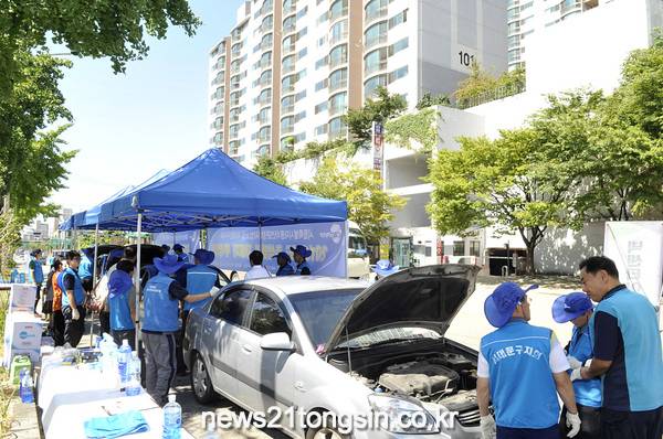 이날 지회 소속 전문 정비사업자 70여 명이 자원봉사에 나서 핸들과 타이어, 브레이크, 변속기, 배터리, 등화장치, 냉각장치, 벨트류 등을 점검한다.