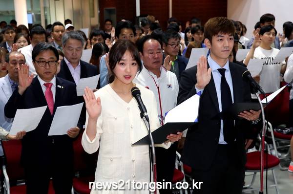 오늘 발대식은 이기흥 대한체육회장을 비롯하여 체육단체 임·직원, 배드민턴 이용대 선수, 체조의 손연재 선수 등 200여명이 참석한 가운데 개최되었다. 이용대 선수와 손연재 선수는 자원봉사자를 대표하여 선서자로 나서 4개월여 앞으로 다가온 2018 평창동계올림픽대회의 성공적인 개최를 위해 적극적인 자원봉사 활동을 펼칠 것을 약속하였다.