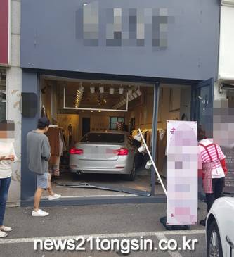 이 사고로 의류매장 유리창과 A씨 차량 앞부분 등이 파손됐다. 인명피해는 없는 것으로 전해졌다.