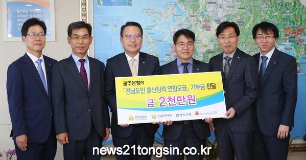 이재영 전라남도지사 권한대행(오른쪽)이 23일 오전 집무실에서 광주은행 송종욱 은행장과 저소득 근로 청년의 자립을 지원하는 ‘청년 희망 디딤돌 통장’ 사업 업무협약을 체결했다.