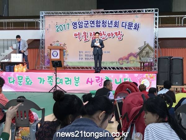 영암군 연합청년회(회장 임홍균) 주관으로 지난 10월 22일(일) 영암실내체육관에서 다문화가족, 외국인 주민 등 300여 명이 참여한 가운데 “2017 영암군 연합청년회와 다문화가족 어울림 한마당” 행사를 개최했다.