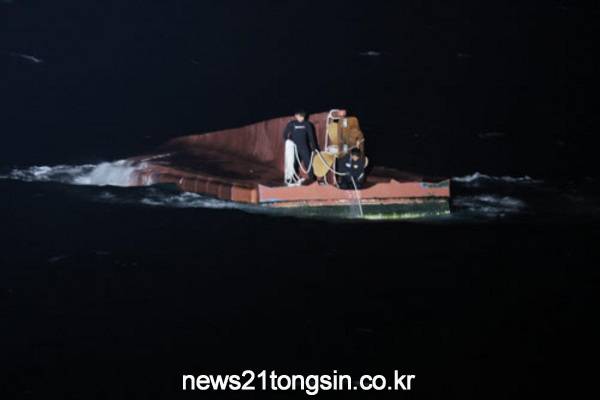 현장에 도착한 해경은 잠수요원 투입해 오후 11시40분께 뒤집어진 어선 안에 있던 박모(57)씨를 의식과 호흡이 없는 상태로 발견해 경비함정으로 옮겨 긴급히 병원으로 이송 중 사망했다.