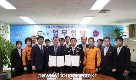 서대문소방서(서장 서순탁)는 육송(대표 박승옥)과 효율적인 화재진압을 위한 50mm 소방호스를 도입하고자 본서에서 소방공무원, 육송 관계자 15명이 참석한 가운데 업무협약식을 체결했다.