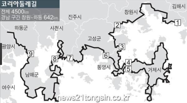 한경호 도지사 권한대행은 "우리나라의 아름다운 국토를 연결하는 코리아 둘레길의 첫 시작을 경남에서 시작하게 됐다"며 "후속 사업이 원활히 추진돼 걷기 여행객이 많이 찾도록 모든 지원을 다하겠다"고 말했다.