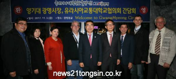 광명시는 유라시아 교통대학교 협의회 총회 참석차 방한한 7개국 국립교통대학 총장들이 지난 3일 시를 방문, 양기대 광명시장을 만난 자리에서 유라시아 대륙철도 출발역 계획에 전폭적인 지지와 함께 구체화 방안을 함께 논의할 것 등을 약속했다고 6일 밝혔다.