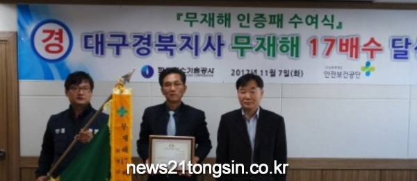 한편 대구경북지사는 2002년 8월29일 무재해 5배 달성, 2008년 5월29일 무재해 10배 달성, 2014년 9월1일 무재해 15배를 달성한 바 있다.