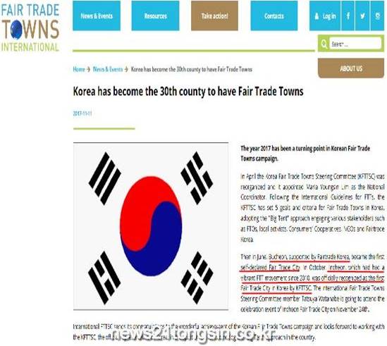 인천시(시장 유정복)는 지난 10일 전국 최초로 국제공정무역마을위원회로부터 ‘국제공정무역도시로 공식 인증’을 받았다.