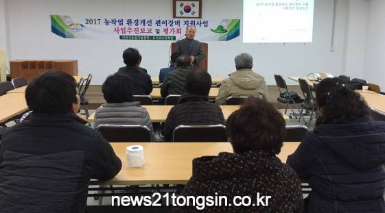 이천시는 지난 22일 모가면 진가리 마을회관에서 모가과수작목반 회원 및 마을주민 30명이 참여한 가운데 ‘2017년 농작업 환경개선 편이장비 지원사업 평가회’를 개최했다.
