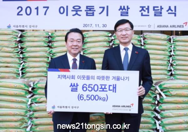 아시아나항공은 30일 서울 화곡동 강서구청에서 '2017 이웃돕기 쌀 전달식'을 가졌다고 밝혔다.