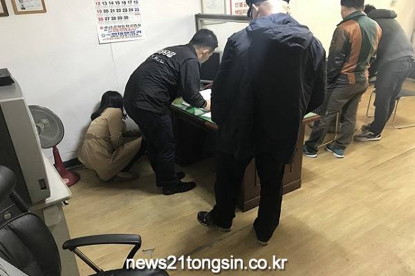 ▲ 서해지방해양경찰청 광역수사팀 수사관들이 선원 직업소개소 압수수색을 벌이고 있다.서해지방해양경찰청(청장 구자영)은 자신이 운영하는 모텔에 투숙한 선원에게 몰래 향정신성의약품(졸피뎀 등)이 섞인 음료를 먹이고 성매매 알선과 감금 및 폭행 등을 행사한 일당을 검거, 구속했다.