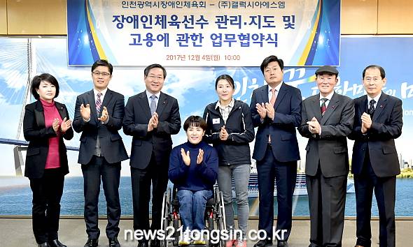 인천시는 4일 장애인체육선수의 기업체 고용을 통한 경제적 안정으로 장애인체육발전을 도모하기 위해 (주)갤럭시아에스엠과 장애인선수 채용 및 발전을 위한 업무협약을 체결했다고 밝혔다.