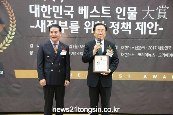 국회에서 진행된 수상식은「2017 대한민국 베스트 인물 대상 조직위원회」에서 주최했다.