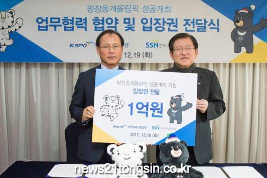 국민체육진흥공단은 19일 올림픽파크텔에서 평창동계올림픽 국내붐업과 복지시설 아동들의 올림픽경기 관람 지원을 위해 한국사회복지협의회(회장 서상목)와 평창동계올림픽 경기 입장권(1억원) 기부 협약을 했다.