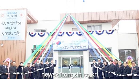 준공된 북내파출소는 1985년 건축돼 32년 간 지역 주민들과 함께 했으나, 노후화로 인해 지난 9월 12일 총사업비 4억 2500만 원을 들여 개축 공사에 착공에 들어가 대지면적 2,012㎡(608평), 건축연면적 232㎡(70평, 지상 2층) 규모로 개축을 완료했다.