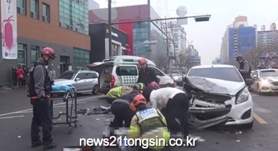 13일 오후 4시 40분께 서울 강서구 등촌동에서 세차장을 나오던 택시가 차량 11대와 잇달아 충돌하며 1명이 숨지고 5명이 다쳤다.