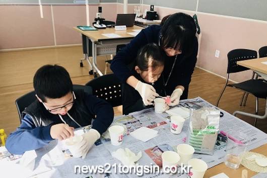 교육에 참여한 아동들은 치과에서 사용하는 재료로 직접 내 치아모형 만들기를 해 볼 수 있다. 눈에는 보이지 않는 구강 내 세균을 채취해 위상차전자현미경으로 내 입속 세균을 관찰할 수 있다.