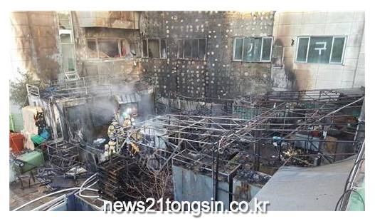고물상 바로 옆 요양원에 있던 환자 43명과 요양원 관계자 8명은 각종 고물이 타면서 검은 연기가 다량 발생하자 건물 밖으로 황급히 대피했다.