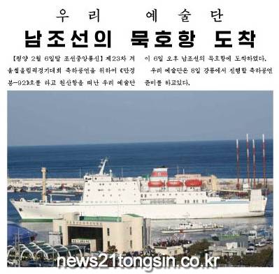 <노동신문>도 이날 4면에 묵호항에 정박한 '만경봉-92'호 전경 사진과 함께 관련 사실을 알렸다.