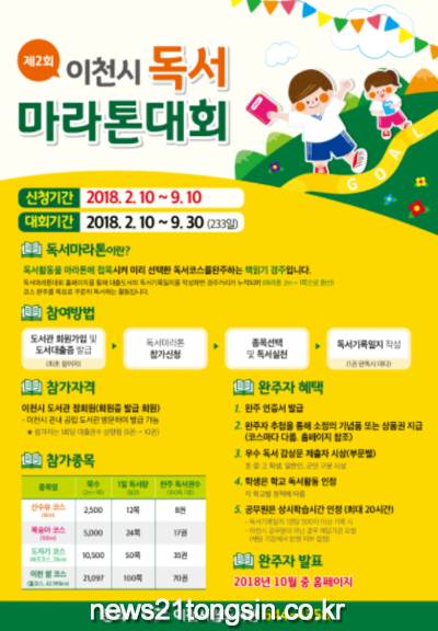 신청을 원하는 사람은 10일부터 이천시립도서관 홈페이지 또는 이천시 독서마라톤 홈페이지를 통해 접수하면 된다.
