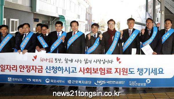 이날 이재영 전남지사 권한대행과 박홍률 목포시장, 권욱 도의회 부의장, 명록이 근로복지공단 목포지사장, 김광근 목포세무서장 등과 상가와 세무사 사무실, 역을 돌며 일자리 안정자금 제도를 알리고, 신청을 권장했다.