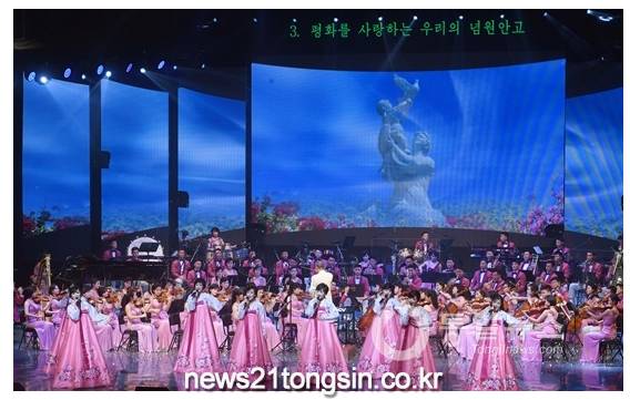 ‘삼지연 관현악단’이 서곡 ‘반갑습니다’, ‘흰눈아 내려라’, 경음악 ‘내 나라 제일로 좋아’, 현악합주와 여성독창 ‘새별’, 관현악 ‘친근한 선율’, ‘아리랑’ 외 남측 노래도 무대에 올랐다고 통신은 보도했다.